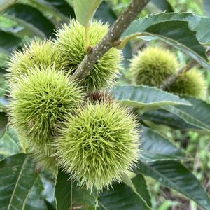 秋の味覚栗の木に実がたくさん見えてきました ⑤我が家のエキナセアのお花の芯が栗みたい❗