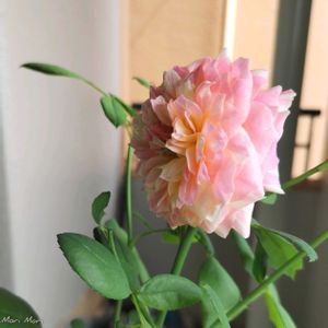 こんにちは〜😊 ベランダで 薔薇 クロード モネ へんな方を向いて咲いてます。なぜ🤷♀️