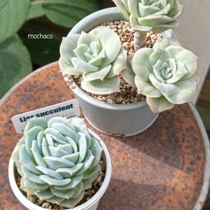 ラブリーローズとローズグリーン💚 ローズグリーンはラブリーローズ交配 何との交配なのかなぁ🤔 ラブリーローズは茎立ちしちゃうけど 今の育ち方を見てみるともしかしたらローズグリーンは茎立ちしない?スゴイ葉数になってる😆 植え付ける時葉挿しもしたけど芽が出なかったので秋になったらカットか葉挿ししたいな〜😊保険株欲しい🥰 冬になったらラブリーローズみたいにピンクになるのかなぁ😍 梅雨明けもまだだと言うのにもう秋冬の事を考えてます😆