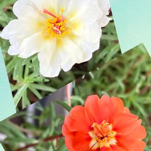 ベランダの松葉牡丹🤍🧡🌿 昨日の投稿に続いて、タネから育てた松葉牡丹です♪ 昨日の赤❤️に続いて、白🤍とオレンジ🧡もやはり一輪ずつ咲き始めました‥‥ 八重咲きにニンマリです☺️ (˘⌣˘)♡(˘⌣˘ )