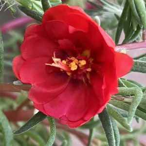 ベランダの松葉牡丹❤️🌿 タネから育てている松葉牡丹♪ 少し涼しくなってきて、花数も増えてきています、今日は真っ赤な松葉牡丹です❤️ (˘⌣˘)♡(˘⌣˘ )