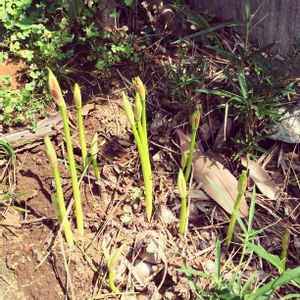 今年は曼珠沙華の開花がおそいなぁ… と思っていたら、ありました😊 路地の階段脇、いつもの場所に! アスパラガスみたいな蕾がニョキニョキ。 お彼岸中に開花するかしら🤗
