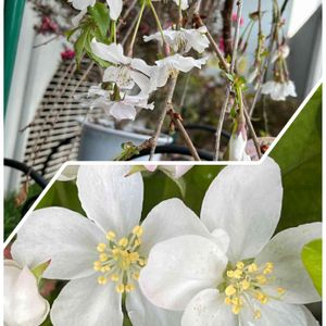 おはようございます😃 りんごと枝垂れ桜が咲きました❣️ 可愛い😍❤️