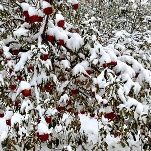 こんばんは😃 青森にも初雪が降りました まだ収穫前のリンゴ🍎に積もった雪 もう 10センチは降った〜😨 久々て運転もドキドキです💓 これから寒い季節がやって来ます 皆さん 体調に気をつけて過ごしましょ 今年 最後の月になりました 宜しくお願いします🤲 🌺💕🌸🌺💕🌸🌺💕🌸