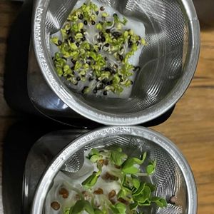おはようございます😃 昨夜と今朝の様子です! 🌱🌱🌱🌱🌱🌱🌱 はやくな〜い??? 小さくてカワイイが過ぎる💖 まあカイワレとブロッコリーは しっかりいただくんですけどねっ 🤭