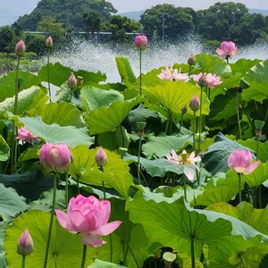 今日のお花 ハス 友好記念にベトナムから贈られたベトナムハス 1時間毎に10分間、3ヵ所から噴水が上がります 暑さを忘れて楽しめました。 太陽が出る頃、一番美しいようです。 まだしばらく咲き続きそう。 池の周りの田んぼもあっという間に濃い緑色。 たくさんの🦆🦆🦆🦆🦆達は、とっくに北の国に飛び立って行きました。 暑い中、何処かで涼んでいるクロちゃん。探しても見つけられませんでした。