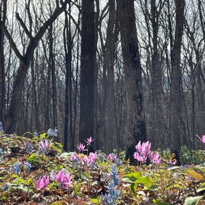 男山自然公園 カタクリとエゾエンゴサクの間に咲いてます💖🤍🤍🤍