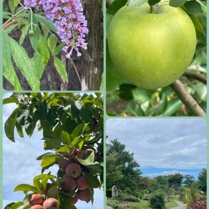 💕今日のお花 過去pick💕 (リンゴ🍎) 右は登別の園芸屋さん 季節の花🌷🌸🌺🌻 大小様々な木🌳 を、山いっぱい植えて 売っています🍀*゜ 左下は 壮瞥の果物🍎🍊🍈🍉🍇 ロードの中の1軒のお店の畑 美味しい林檎=͟͞🍎🍏