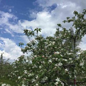 これ、リンゴの花です。 GWに青森に行った時の写真です。 まだ蕾も多かったですが、とっても良い香りでした。 お岩木山も見れたし♪ リンゴの花は、今日あたりが見頃だよ、きっと^w^