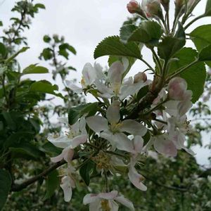 リンゴの種類で、アルプス乙女の花が咲き始めました。 去年は実がならなかったので、今年はなんとか上手く受粉させたいです。