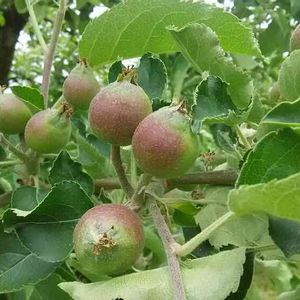 アルプス乙女。 花の数の割に実になった数が少ない。 まだ木が若いからかな? 確認できた実の数はたった2つ。