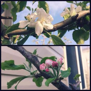 りんごの花 🍎🍏 我が家には大きなりんごの木があります。毎年、8月頃になると大量のりんごがなるのですが、多すぎるため土に埋めてしまいます できるかぎり、アップルムースを作って家族でせっせと食べています🍏🍎🍏🍎