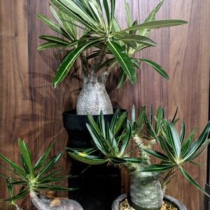 今日は待ちに待ったイベントの日♪ 【Collect Plants】、略してコレプラという植物イベントが初開催されます💕✨🤩✨💕 熊本最大級、いや九州最大級とも言われるイベントが近所(ちょっと言い過ぎか?😅)であるなんて夢のようです🤤 今日は12:00から、明日は9:00から色んなジャンルが集結するらしい♪ もうワクワクが止まんね💦 朝からソワソワしている☆りん☆なのでしたぁー(今日のわんこ風🤭) pic… パキポディウム・グラキリス✨ 和名:象牙宮𓃰 我が家のグラキリスの御三方、個性的です♪ 現地球(左・中央)と実生(右)で同じ種類の植物かと思う程フォルムが違いますが、何と言っても肌の色や質に違いがあります😳 2枚目、左の小さい現地球🌍️ 肌は乾いた時は茶褐色、濡れると赤黒くなります。 表面はフラットな感じ。 3枚目、後ろ中央の大きめ現地球。 綺麗なメタリックなシルバー✨ 植物でこんなシルバーってあり得るんだぁーって思っちゃう位♪ 横に細かいシワが入ってます。 度々、縦にも妊娠線のようなモノも見受けられます。 4枚目、2019年実生のグラキリス✨ 実生株はトゲが多いですね😱 色味は圧倒的にグリーンな感じ。 今日のイベントでは どんな個性的な植物に逢えるか楽しみだな🤗