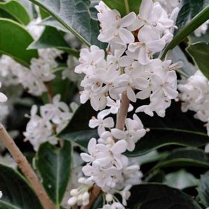 四季咲きモクセイ 銀モクセイ (四季咲き) 季節外れの キンモクセイが咲いて😲👀 我が家の… 銀モクセイも 咲いています😃🎶 1年に何度も咲くけど 秋が一番 いい香りです‼️💕