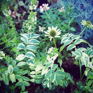 玄関前の小さな花壇。 空いてしまった場所に昨日届いたエキナセア グリーンジュエルとポレモニウムをとりあえず置いてみました😊