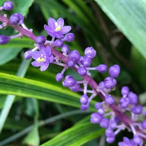 ようやく咲いた 我が家のヤブラン 濃い紫は1本だけなんだけど 台風に負けてないかな? 風が強いですね🌬
