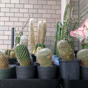 手前の鉢を動かしたら オヤ😳‼️ 真っ白な子柱ちゃんが頭を出していました。 ついに4人家族になったんですねぇ🤗 なんて真っ白、これが本来の色☝️ 雑な扱いで茶色くなったのが目立ちます スミマセン😰