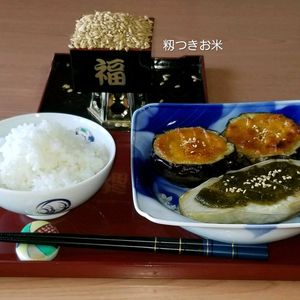 ちょっと番外編です 籾つき新米 頂きました! 早速 自動精米機の所へ ٩( ¨ *)ว=͟͟͞͞ 💨 白茄子と賀茂茄子をお店で求めて帰宅🍆🤍 ✨炊きたて🙏🍚🥢⸜(ŧ‹"ŧ‹"˙˘˙)⸝ ナスもツヤツヤ✨ 田楽にして‥柚子味噌と赤味噌載せて ご馳走さま😋🙏(˘︶˘人)