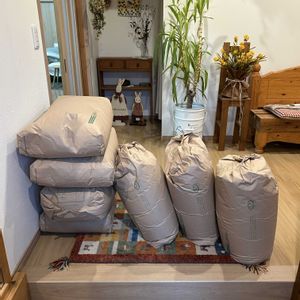 こんばんは😊 昨日 お米農家さん👨🌾🌾から 届きました( •ᴗ• ) 新米🌾 「はれわたり」 感謝🙏して頂きますね 以前レオのママさんのプレ企画に 当選した時のリメ鉢さん☺️ 久しぶりに 多肉ちゃんの植え替え 夜なべっこ... 私は夜なべ 苦手💦😅ですが ママさんは お仕事しながら 夜なべしてます☺️ ありがとうございます