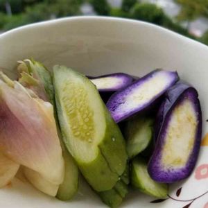 今日は、糠漬けが、 いい感じ🎵 🍆が、いい色に。 さっそく 新米ごはん🍚🍴と 頂きます。 江戸むらさきも、 一緒だよ。❤️(笑)