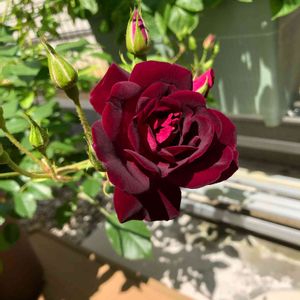 フラム、ようやく完全開花!剣弁咲きかとおもったのだけど。。カップ咲? すごい強香! うちにある薔薇たちを香りの強さが強い順でいうなら、、、私の勝手な主観ですが。 1、フラム 2、レディエマ 3、メリル 4、レイニーブルー 5、バーガンディ 6、フランソワ かなぁ。香りがないか微香をのぞくなら。 1〜3は開き具合とかで変わるから変動はあるかもだけど、かなり強い。 4から6は中香から微香。うわぁ!ってほど香らないけどそれぞれ違った香りがあっていい。 あと1つ香りがあるかはわからないけど、ポンポネッラがあるけど まだ咲かない。 どんなのか楽しみ