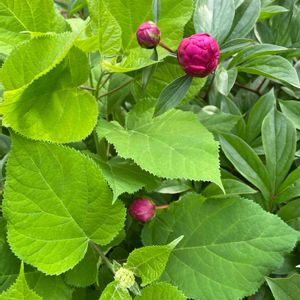 今朝の芍薬💗 少しほころび始めたかな〜♪ アナベルの花芽も発見(,,> <,,)♡ ちっさ!