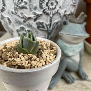 徒長してたラブリーちゃん♡ カットしてから数日経ち発根確認👍 リメ鉢に植えました♪ カエルくん(Θ-Θ)見守っててネ💕