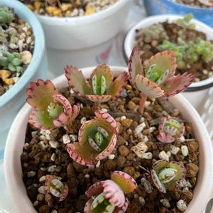 去年、直売所でお子ちゃまいっぱい付けた子宝草お迎えして… 根っこが出た大きめなお子ちゃまを、せっせと植えつけた🌱🌱🌱🌱🌱🌱 可愛くバンザイしてる٩(◜ᴗ◝ )۶ もっともっと沢山あったけど… ご察し下さい😆(笑)