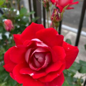 薔薇🌹 この薔薇も昨年より 綺麗に咲いてくれ嬉しい💕 目が覚めるような赤で 花もちの良い子です🌹 水曜日ローズショー 参加いたします🥰