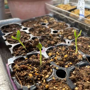 今年もあの可愛い〜実が楽しみ♡ オキナワスズメウリ💚❤ 芽が出たよ🌱🌱🌱 右奥は、ハートカズラ🌱🌱🌱