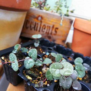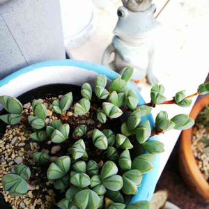 お迎えしてから1ヶ月ちょっと クリスタルちゃんからアドバイスもらい🤭 植え替えしましたー💕 ダイソーの3色セットのプラ鉢に🌱🌱🌱 今のところ、可愛さキープ出来てるかなぁ〜(o>ᴗ<o)