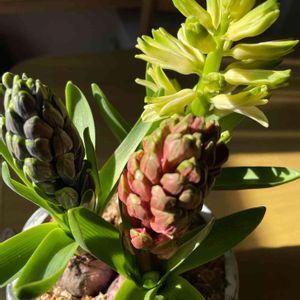 年末にお迎えしたヒヤシンス三兄弟🪴 少し変化が…👀✨ 今のところ白が優勢ですね(*^^*) 普段は窓辺に居ますけど 日中は日向ぼっこさせてます ܾ ܾ 𖥧𓇣𖦥𖥧𖥣- ̗̀ ☺︎ ̖́-