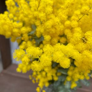 おはようございます☀️ 昨日、お友達から頂いたミモザ🌼*・ 風邪の強い中🍃🌀🍃 簡易ビニールハウスで記念撮影📸 元気と癒しのビタミンカラーですね 💛💛💛 今日も花粉症対策して頑張ります💪
