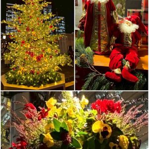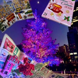 🎄.:♪︎*:・'空と植物.:*・♪︎'☆❤️ Good Morning!(o‘∀︎‘o)b 🎄今日から12月〜アドベントカレンダー今年はトワイニングを購入〜♪ 🫖①トワイニングのアドベンカレンダーと🌹赤色ミニバラさんෆ̈ブルーアイスෆ̈へデラ♡ ✨背景に中之島公園のイルミネーション✨ 💛②レトロ建築の中之島💰日本銀行大阪支店旧館とイチョウの木✨ 💙③④大阪市役所前の「寝そべりポーズ」のミャクミャクさん♡ サンタ仕様でお出迎えしてくれてます🎅