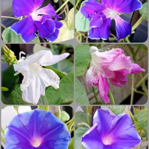 相変わらず暑い1日になりそうです💦 …が、グリーンカーテンの朝顔達。スプリットペタル🩷と、白花🤍「ジプシーブライダル」は🔰お初です😄❣️ 上段、裂裂弁咲きアサガオ ヒゲ咲き。 🌹マイスタージンガー❤️、🩷🩵レイニーブルー、ニコール🩷🤍、アラビアンジャスミン⚪️🌿 終盤のグロリオサ🥰 ペチュニアの「まっちゃきんとき」 💚🤎もやはり😊❣️見入ってしまいます📱💕