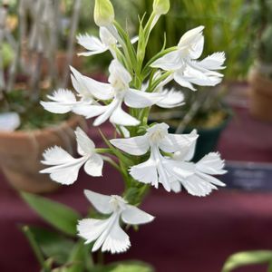 大鷺草。ラン科ミズトンボ属。 (長文) 念願かなって、高知県の牧野植物園に行ってきた。徳島に所用があるのにまず高知に行き、着くやいなや植物園に直行。「おまん、よう来たのう」と迎えられた。 門を抜けて最初に谷麝香草(たにじゃこうそう)が咲いていたのだが名前がわからず、写真だけ撮った。 チケット売り場で写真を係員に見せて教えてもらおうとしたら、すぐに係員もわからず、他のスタッフが咲いているところへ駆けつけて名前を教えてくれた。この素早い対応にまずうれしくなった。 らんまんで紹介された花はすべて花の名前の上に「らんまん」のタイトルマークがあった。咲いている花は、開花が表示されている。至れり尽くせりのおもてなしである。 なかなかお目に掛かれない絶滅危惧種のダイサギソウが咲いていた。草丈がサギソウに似て大型なのでこの名になっているが、花弁の側裂片が細かく切れ込んでいない。 ダイサギソウは萼片と花弁が純白で大きく、目を引く。裸地に最初に侵入するススキやイタドリなどと同じ先駆植物的なランである。もちろん、らんまんで紹介されたジョウロウホトトギスやスエコ笹も植生されていた。園内には牧野博士の壮年、晩年時代などの業績を紹介したコーナー、実物の標本や植物画も掲出されている。一日に一気に見て回ったので、頭の中が植物だらけになってしまうほど楽しめた。 植物園では群を抜いていることだけは確かだ。(10月5日撮影)