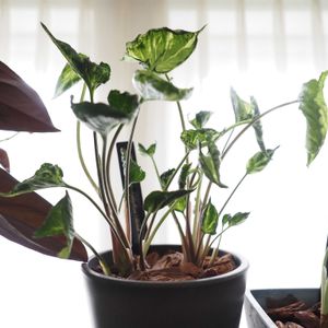 モニター中のシンゴニウム・シュリンクハート 縮れた葉っぱが特徴です。 三ツ星品質様の投稿を見て、みどりのまとめだけではなくタイムラインにも投稿しなくては!と思いました。 順調に育っています♡ シンゴニウム・ホワイトバタフライと一緒に撮影してみました。 ホワイトバタフライはいただきもののスマートプランターivyを使って育てています。はじめから中華系は信用してなかったので想定内ですが、数ヶ月で水分量が減ったときのアプリ通知もこなくなりました笑 ふつうに自分の感覚で育てればいいので、困ってはいないのですが… ただの表情がくるくる変わるだけのプランターになりました笑