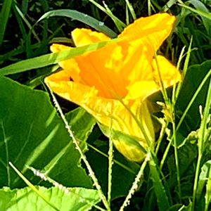 かぼちゃ🎃の花 通り道の農家さん宅の畑に 迚も元気に田んぼの中迄入って行きそうです 先日の朝の散歩道で