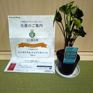 こんばんは✨ 久しぶりにモニター当選しました‼️😆 豊明市場✕GreenSnapオリジナルブレンド「三ツ星品質」 シンゴニウム シュリンクハート🎵 縮れ葉とは知っていたけど、箱を開封してビックリ‼️😲 水切れかと思っちゃいました😅 さーて、何に植え替えようかな🎵 土と鉢を何にするか迷います😊 豊明市場さん、GreenSnapさん、ありがとうこざいます m(__)m