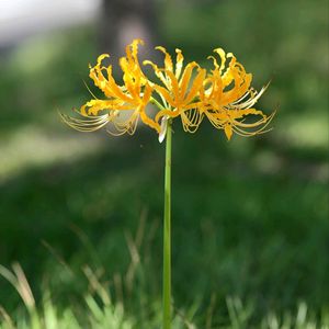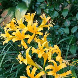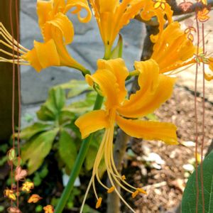 リコリス・オーレア(学名:Lycoris aurea 英名: Golden Spider Lily、Golden Hurricane Lily)の花🌸🌿🌼 リコリス・オーレアはヒガンバナの近縁種で、ヒガンバナよりやや花弁が幅広く大きめで鮮やかな黄色の花を咲かせます。 「オーレア」はラテン語で黄色や金色を意味する形容詞です。 リコリス・オーレアの花は、ヒガンバナと近い時期に開花しますが、ヒガンバナの開花期後半から咲き始めるためヒガンバナの開花後も咲いています。 素敵な黄色のリコリスをお楽しみください。 🌺🌿🌸