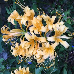 何年か前にホームセンターでリコリス・オーレアの名前で球根を買いました。黄色い彼岸花の仲間は正確にはオーレア以外にもいくつかあるみたいですが、区別はよく分かんないです😆 これは雌しべが妙に長いのが特徴です。