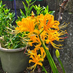 リコリス オーレア ラティフォリア Lycoris aurea 石黒紅葉園さんより譲って頂いたオーレアが開花しました😍😍 中国から導入した株だそうですが、雌しべが赤くなるのと、開花してしばらくすると下垂することから、ラティフォリアだと想定しました。 畑では比較的寒さに強いインドオーレアくらいしか維持できないので鉢植えで大事に育てます! オーレア系のリコリスはどうしても耐寒性低めなので、いつかは春出葉のキネンシスも育ててみたいですね!