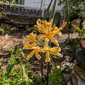 2024秋の十草、すでに別の品種で一票入れていますが、リコリスで~♪ 小田原城の側のコインパーキング脇のおうち(事務所?)の花壇に咲いていたものです。 リコリス・オーレア(ショウキラン、ショウキスイセンなどの和名があります)だと思います。とても鮮やかな黄色でした😊