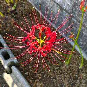 散歩中に見つけたヒガンバナ フェンスからはみ出るように咲いていました