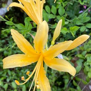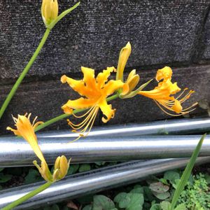頂き物の黄色いリコリス(おそらく鍾馗水仙) 昨年は咲いてくれなかったのだけど、今年は無事咲いてくれました とても美しくて大好きな品種です✨