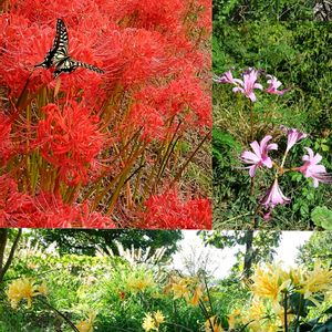 9/29㈮④ ④⑤⑥は今日午前中に訪ねた新羽(にっぱ)にある彼岸花と萩のお寺、西方寺の写真です。 横浜の港北七福神の恵比寿様を奉るお寺です。 コメント蘭は④⑤は閉じて⑥から開けますね😉 赤い曼珠沙華が一番沢山咲いていました。彼岸花と聞くとコレを思い浮かべます。 真っ白ではなくクリーム色にピンク色が入るリコリス エルジアエも沢山咲いていましたが、 今年は真っ白なリコリスアルビフローラはもう咲き終わった後で、全然ありませんでした。 園芸品種のリコリス(ピンクマンジュシャゲ)も沢山咲いていました。 黄色いリコリスオーレアはまだ蕾のものが多くて、開花したものが少なくて残念でした。 全体的に去年の方が綺麗でした。今年の猛暑日続きでは、一度に四色咲かせるのは難しかったようですね😅 次に萩を紹介します。