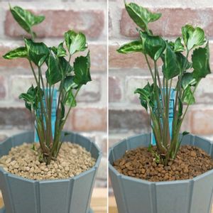 三ツ星品質、シンゴニウム・ シュリンクハート🏷️、3ヶ月経過した様子です。 3号ポットに植えられた苗を、5号のスリット鉢に植え替えて3ヶ月。葉の枚数も増えました。 スリットから、根が出てきました。根詰まりが気になりますが、成長は緩やかなので春を待って6号スリット鉢に植え替えようと思います。 週1回の水やり、毎日の葉水(時々忘れる😅)、モニター期間中2回の液肥(微粉ハイポネックス)と、活力剤で元気に3ヶ月過ごしました。とても育てやすい、クシュクシュした葉が可愛い観葉植物🪴です。 これをもって、モニター観察は終了します。 みどりのまとめNo.99に3ヶ月の記録📝まとめています。 モニター仲間の皆さま、情報交換ありがとうございましたm(__)m