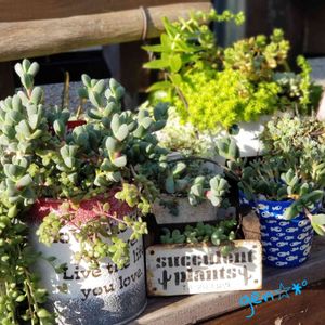 おはようございますっ(●´ω`●) 昨日の春のような陽気とはうってかわってどんよりな空のgengen地方です💦 作家さんお友達から可愛いパウンド缶頂いたので 寄せ植えしましたヾ(*´∀`*)ノ 多肉は可愛い♥ 現実逃避じゃないけど、コロナのこととか、不安😥な気持ちを緩和できるよーな。 どーしたらいいんだろうっ。どうしたら自分の大事な人たちを守れるんだろう。そのために自分は感染してはいけないってそればかり考えます。 答えはなかなか出ない・・・。 今日は休みなのでステイホーム。制作と多肉事しちゃおっと!
