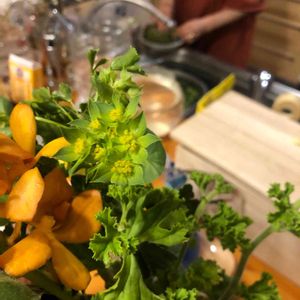 芍薬を生ける4〜和洋折衷 芍薬に合わせる色やバランス、微妙な長さ関係などの調整が必要です。 カナダの山火事の影響で、私の住んでいる場所でも大気汚染がひどくなり、PM2.5の数値がどんどん上がり、ニュースに出ているニューヨークシティより、さらにひどい261になりました。昼間でも暗く、太陽が真っ赤で気温も上がりませんでした。初めてのことでSF映画の中に入り込んだようでした。何が起こってもおかしくない世の中なんだな、とつくづく思い知らされました。 ちょっとだけ雨が降り、今の数値もまだ高い220。東京の数値が90位、今日も外に長くいるのは危険な大気状態だそうです。 花器: 🇺🇸製、外側が白、内側が青のガラスの花瓶 花材: 芍薬、カーネーション、アガパンサス、アルストロメリア、バラ、アジサイ、ブプレウルム