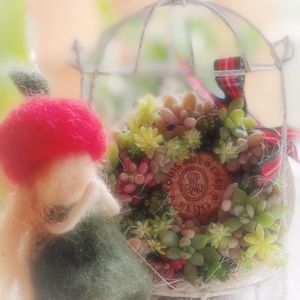 おはようございま〜す(*´∀`*)ノ"♡ 数日前に仕立て直した、茶こしリース💗 100均の茶こしが、可愛い〜リースに変身するから、なんでも寄せ植えを楽しめるね〜(⁎˃ᴗ˂⁎)♡ 詳しい作り方は、くるみ*さんの“みどりのまとめ”に載ってますよ〜❀(*´▽`*)❀